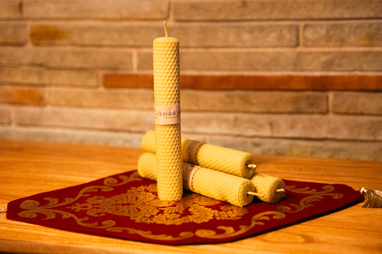 Desde os primeiros séculos, a Igreja utiliza velas como expressão concreta de oração, sacrifício e culto a Deus. A cera, o pavio e a chama são vistos como símbolos do corpo, da alma e da divindade de Cristo. Por isso, a cera de abelha — pura, natural e não-tóxica — sempre foi considerada o material mais adequado para o uso devocional e litúrgico, tanto pelo simbolismo quanto pela nobreza da matéria criada.